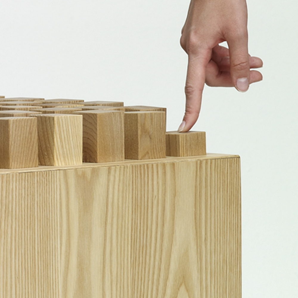 The HedgeHock offers you a truly unique sitting experience. It’s sharp cubic design, seemingly contradictory to sitting comfort, it first glance, gives way to ergonomics at it finest, once seated, as 49 individually cushioned wooden blocks gently shift to accommodate all body shapes.