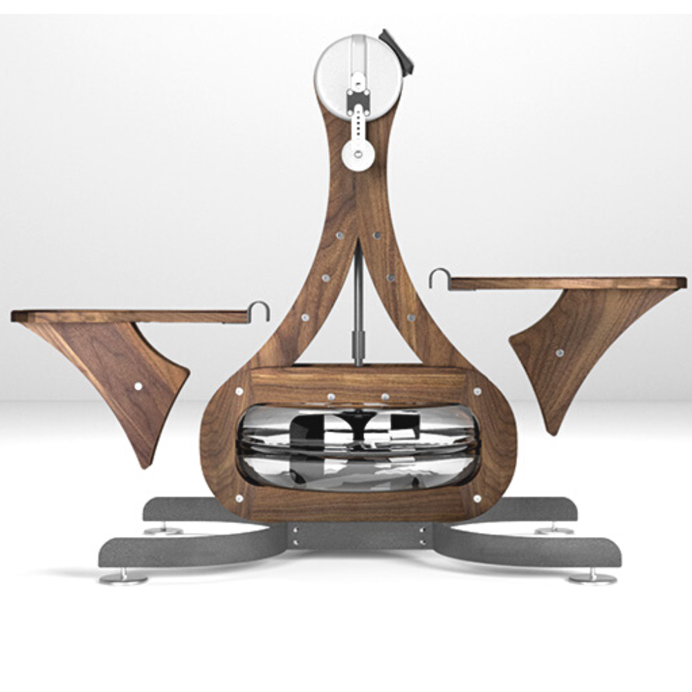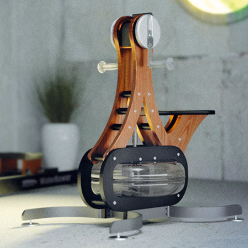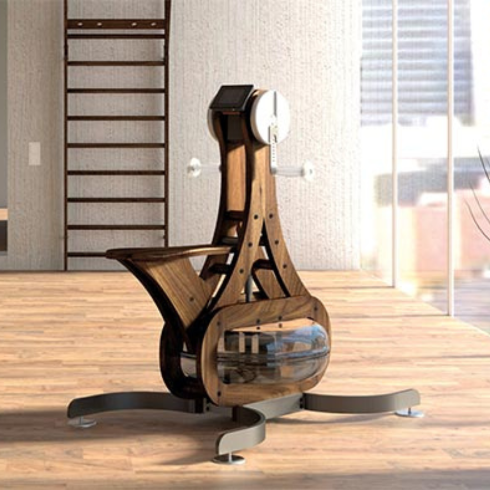 The WaterGrinder is easy to use while providing a wide range of exercise possibilities. Its elegant, drop-shape wooden frame is a true eye-catcher in the home or studio.