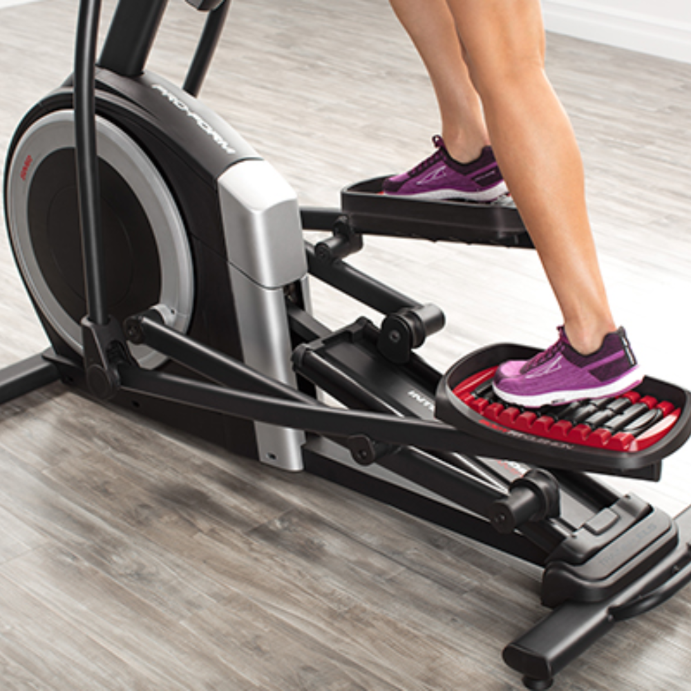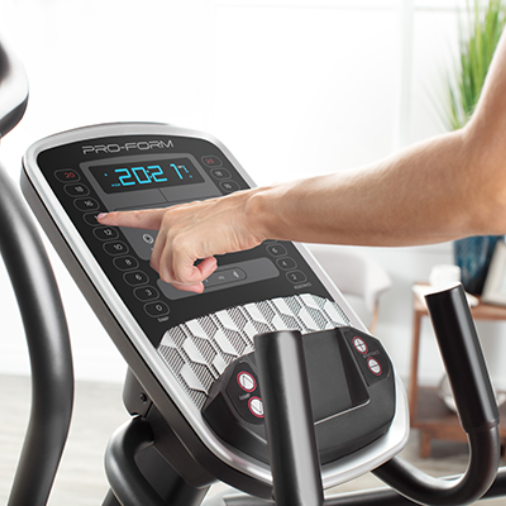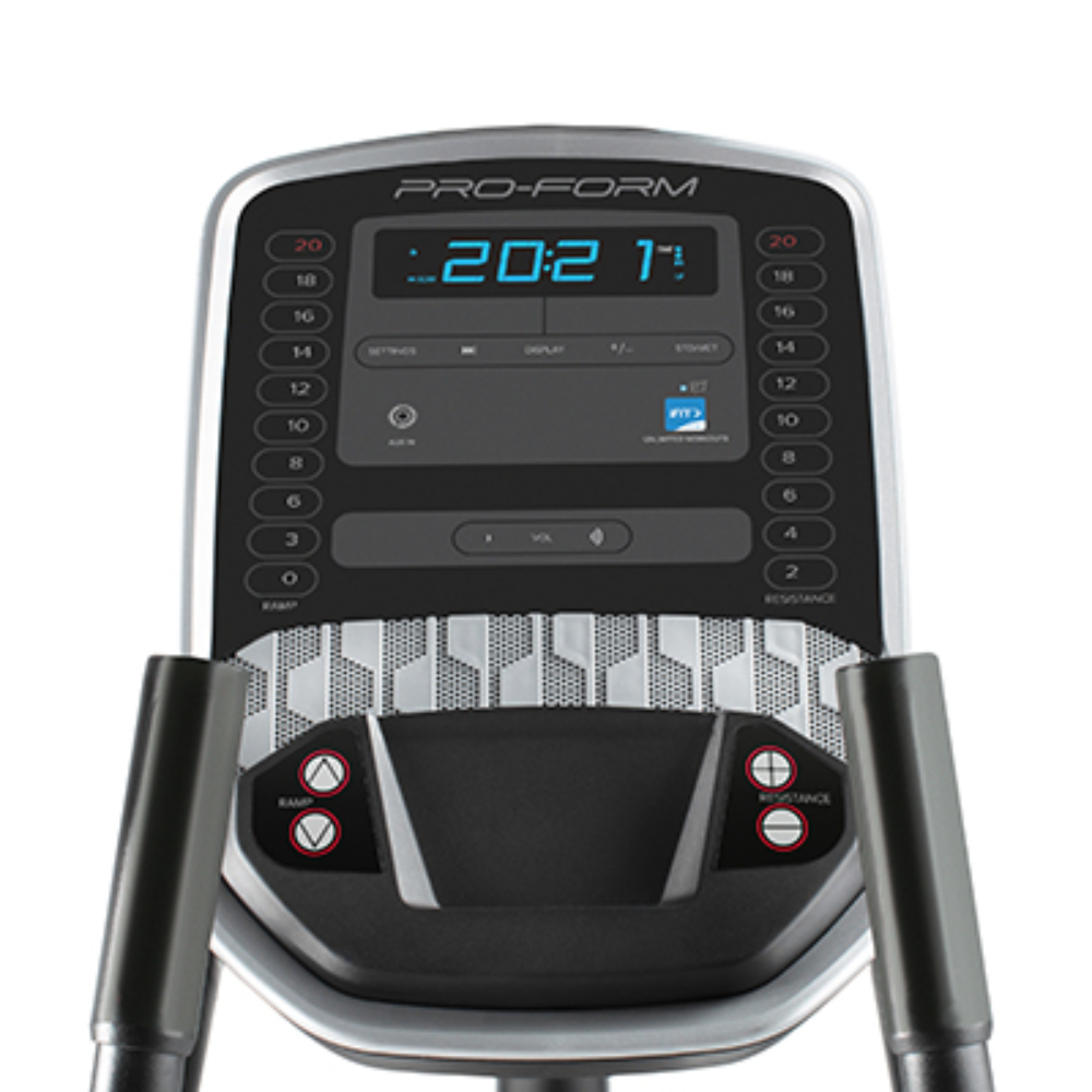 The ProForm EL5 Elliptical offers a smooth and quiet cardio workout with its 20" stride length and incline ramp system. Its patented SpaceSaver design provides extra stability and creates a more efficient workout with greater intensity. Enjoy clear, digital readouts of your speed, distance, and calorie goals with the easy-to-read LCD display.